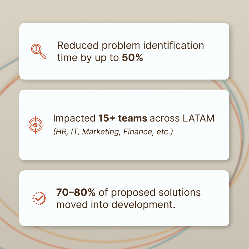 I led the development of a regional Design Thinking program aimed at aligning business and IT teams across LATAM, transforming how cross-functional initiatives were framed, discussed, and executed.